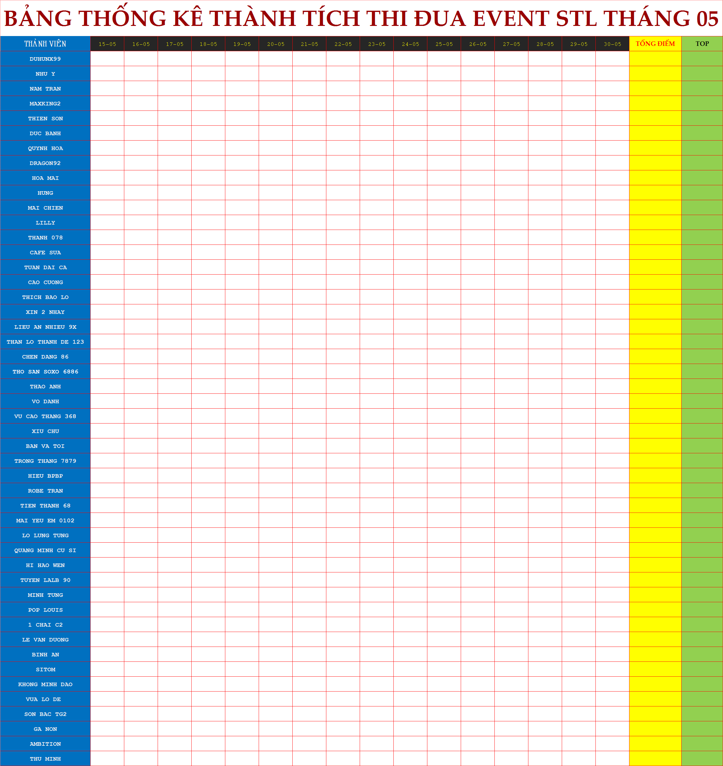- Các thành viên tham gia phải có trách nhiệm tham gia đầy đủ mỗi ngày.