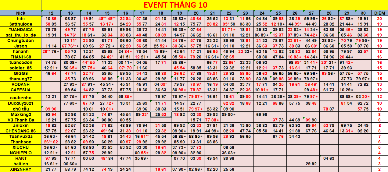 tuancodon 31/10/21 #562 Tham gia 8/8/20 Bài viết 1 Thích 123 Xu 30,547 xu 31/10/21 #562 31-10-2021 Song thủ lô 11-25☆